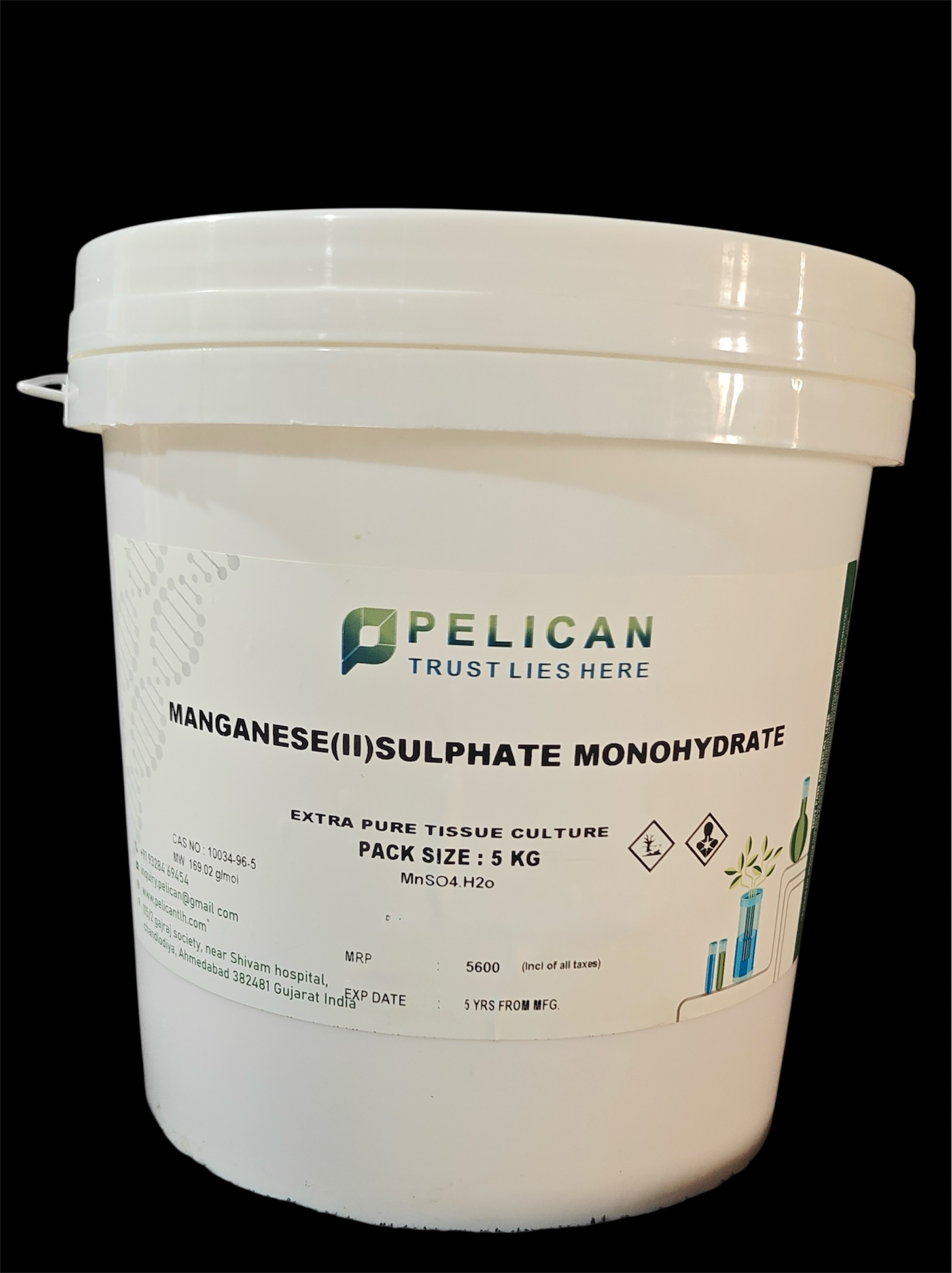 Manganese Sulphate Monohydrate (MnSO4 • H2O) is a micronutrient used in plant cell culture media and in cell culture experiments: